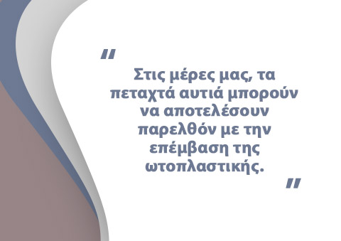 Είναι, λοιπόν, φανερό ότι στις μέρες μας τα πεταχτά αυτιά πρέπει να πάψουν να αποτελούν παράγοντα ψυχολογικής επιβάρυνσης για το παιδί ή τον ενήλικα που έχει το πρόβλημα. Με τις σύγχρονες χειρουργικές τεχνικές μπορούμε να πετύχουμε ένα όμορφο, φυσικό αποτέλεσμα που αντέχει στο χρόνο.